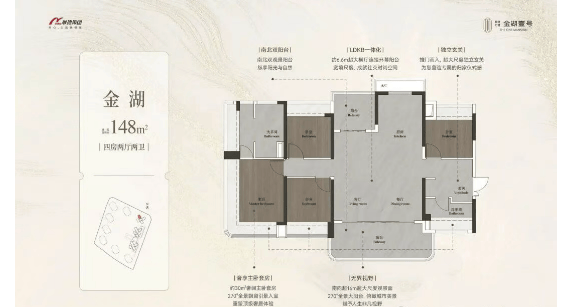 新规户型、极致美学空间详细介绍了敏捷·万博金湖壹号提供的多样化户型及其设计理念。项目主推98-148平米的四房户型,所有户型均采用新规设计,使用率超过100%,并通过灵活的空间布局满足不同家庭结构的需求。例如,98平米的户型拥有6米宽的客厅开间和270°环幕视野,提供了极佳的采光和观景效果;而148平米的户型则配备了南北双阳台和超大横厅,适合追求宽敞空间的家庭。每个户型都注重细节处理,力求在有限的空间内实现最大的功能性和舒适度,为业主创造一个温馨舒适的家。