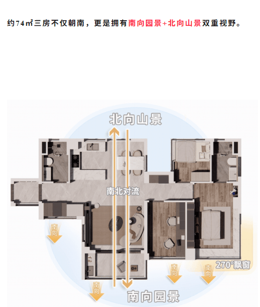 ✨ 一期主推 74-125㎡三至四房,全系采用新规设计,户户朝南,搭配全赠送设备平台与宽景飘窗,空间利用率拉满:
