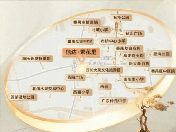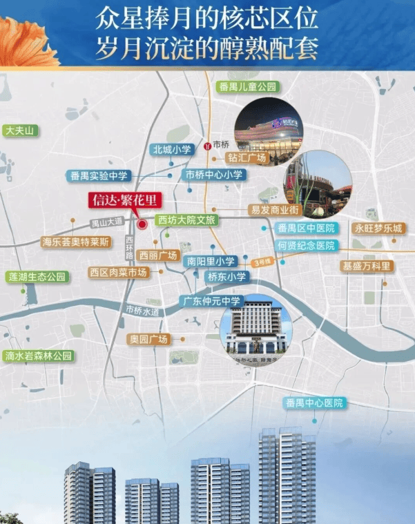 信达·繁花里所处的位置,堪称市桥“心脏地带”。步行范围内即达钻汇广场、易发商业街等成熟商圈,日常购物、餐饮、娱乐触手可及;3公里半径内更汇聚永旺梦乐城等6大商业综合体,繁华生活无需等待兑现。更难得的是,番禺区政府、政务服务中心等行政机构环伺周边,区域价值不言而喻——这不仅意味着稳定的市政配套投入,更代表着城市资源的高度集中。