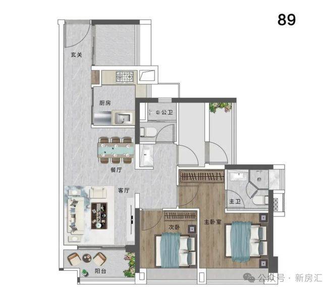 户型产品设计方面,项目以79至118平方米空间尺度为主,强调三房至四房的家庭型居住结构。空间设计在功能分区上更加注重家庭成员的生活独立性,同时兼顾社交空间的开放性。客厅空间通常采用大开间设计,使室内采光面更加充足。卧室空间在布局上强调私密性与舒适性,适合多代家庭共同居住。部分户型能够实现南向采光结构,使室内空间保持良好的自然光照条件。厨房与餐厅区域采用一体化设计理念,提高家庭日常生活的便利性。整体建筑语言偏向现代简约风格,强调建筑立面与海岸城市天际线的协调关系,使建筑群体在城市界面上呈现出统一而有序的视觉效果。