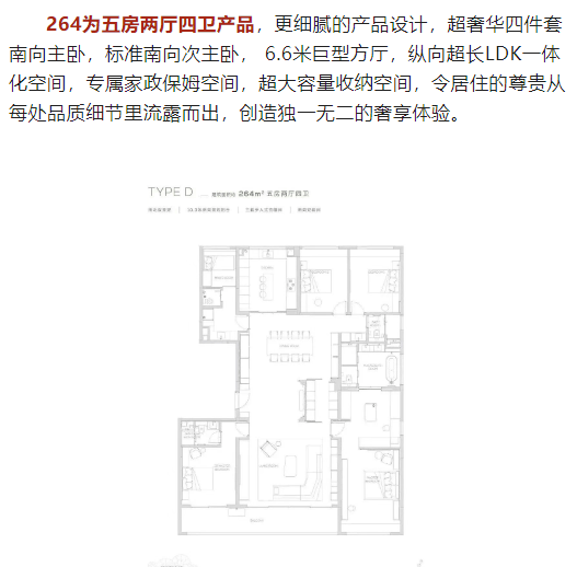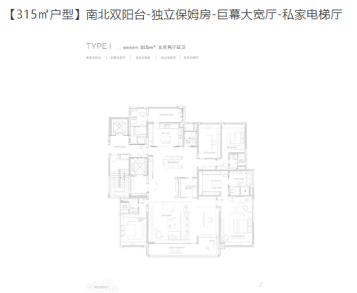 户型面积段:145㎡三房两卫起步,最大可达315㎡五房四卫