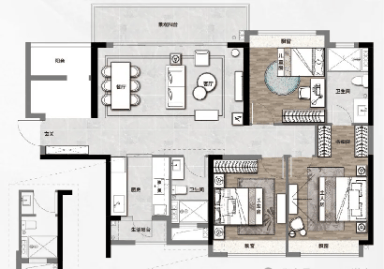 广州洺悦玉府提供多种户型选择,涵盖105-125㎡三至四房的品质准现房。部分楼栋即买即入住,两梯四户的设计使得居住体验更为舒适。其中,105㎡三房两厅两卫户型纯南向且三开间朝南,采光充足;125㎡四房两厅两卫户型则是板块内唯一的正南北横厅户型,客餐厅一体,明亮阔绰。所有户型均采用智能健康精装交付标准,配备全屋新风系统、净水系统、厨余垃圾处理器等高端设备,以细节打造智慧家。