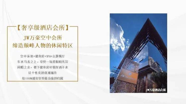 答:项目配套高端私人会所、JW万豪酒店会所、魅影电影会所三大顶奢空间,专属业主优先使用。