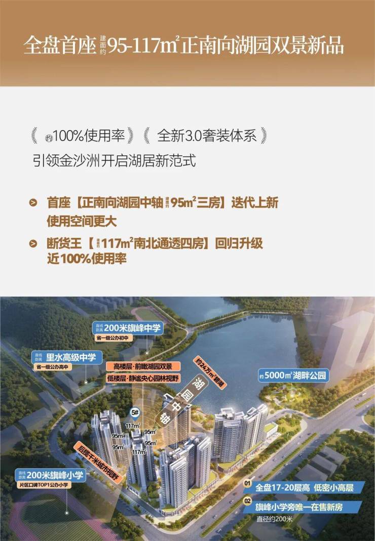 【2T3湖景板楼:建面约133㎡湖畔低密小高层】金沙洲惟一的2梯3户全湖景板楼,仅17层层高,低密舒适的改善型大四房