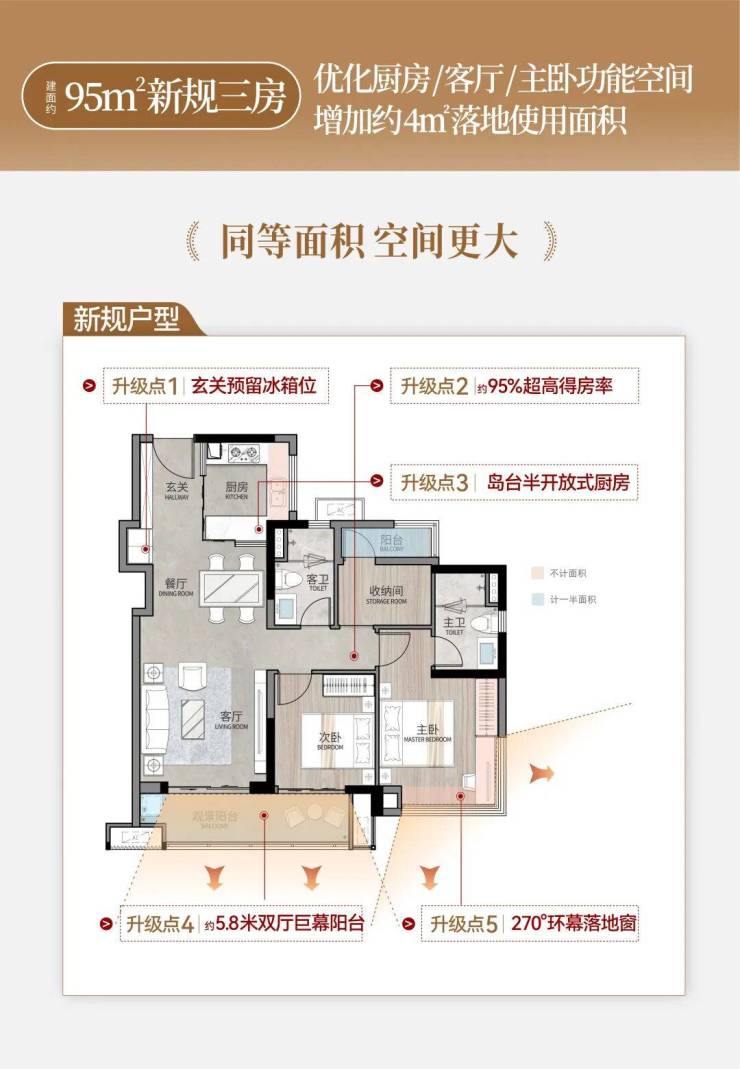 95㎡南向园湖中轴三房,新规加量不加价!市场同级户型使用率王者