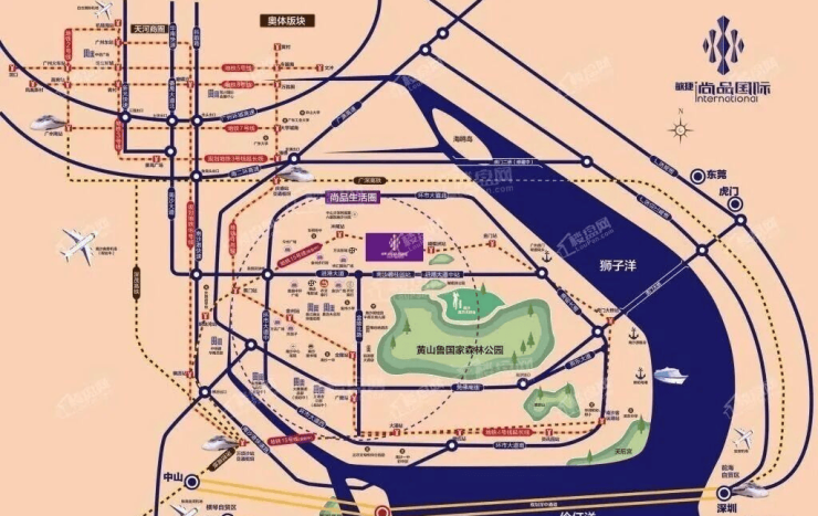 休闲——项目对面即为广州4A级景区黄山鲁国家级森林公园和南沙高尔夫高端球场。站在项目高层就可以赏一线山景,旁边的蝴蝶洲公园还会开设一个黄山鲁森林公园出入口,真正的公园物业;