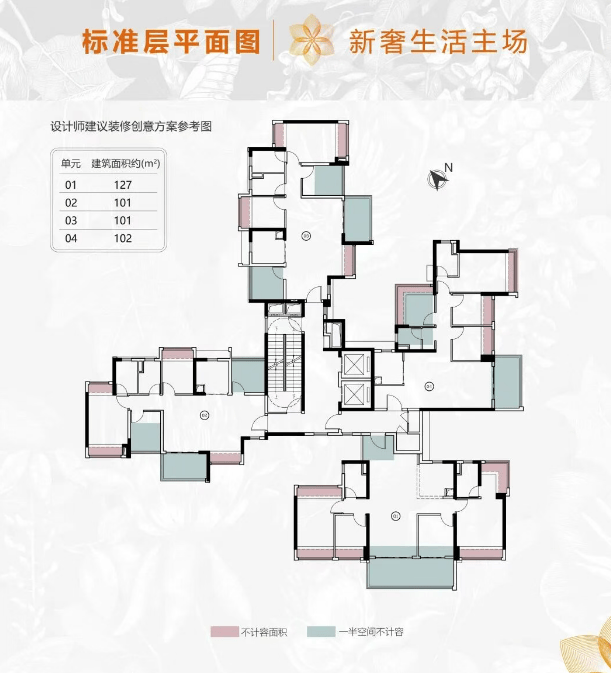 建面约100平方米户型:横厅和竖厅两种格局,单边位设计,通风采光接近板楼标准。