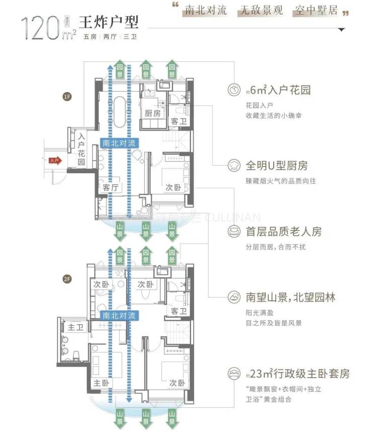 特色:有天有地有花园,配有私家电梯、多重功能空间,满足高端社交需求。如书房、酒窖、观影室等,为业主提供了丰富的私人空间选择。