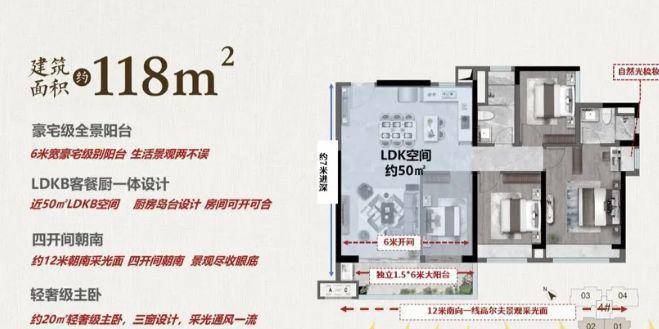 118㎡轻奢户型:这一户型拥有超高的使用率,LDK 空间接近 50㎡,可房可厅,灵活多变,是北滘唯一拥有 “可房可厅” 改造空间的 T4 四房轻奢户型。通过巧妙的空间设计,让 118㎡能享受到 143㎡般的尺度。无论是作为温馨的四口之家居住,还是根据个人需求灵活调整空间功能,都能完美满足。
