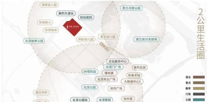 休闲:周边 3 大绿肺公园环绕,北滘公园、北滘门广场、君兰河堤湿地公园,为居民提供了亲近自然、休闲散步、锻炼健身的好去处。同时,2 大地标网红打卡点岭南和园、和美术馆,也丰富了居民的文化艺术生活,在家门口就能感受岭南文化的独特魅力与现代艺术的碰撞。
