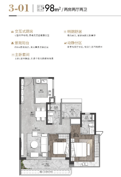 项目主推建面约 98-182㎡全南向三至四房,户型使用率在 95% 以上,居广钢新城前列,目前 6 号楼及其他多数楼栋均有在售。其中 177㎡四房两厅三卫为豪宅改善户型,独梯独户,归家仪式感强,配备约 8.9m 观景阳台,可赏中轴岭南式园林景观,双主卧套房设计,大主套房超 30㎡,还拥有 4+1 百变空间;182㎡三房两厅三卫同样定位豪宅,入门有隐藏式储物柜,可打造私人酒窖,LDK 餐客厅一体化并带岛台设计,超 16m 环绕式 270°IMAX 阳台能尽览中轴园景,宽奢主卧超 30㎡,带双飘窗与步入式衣帽间,居住体验极佳。