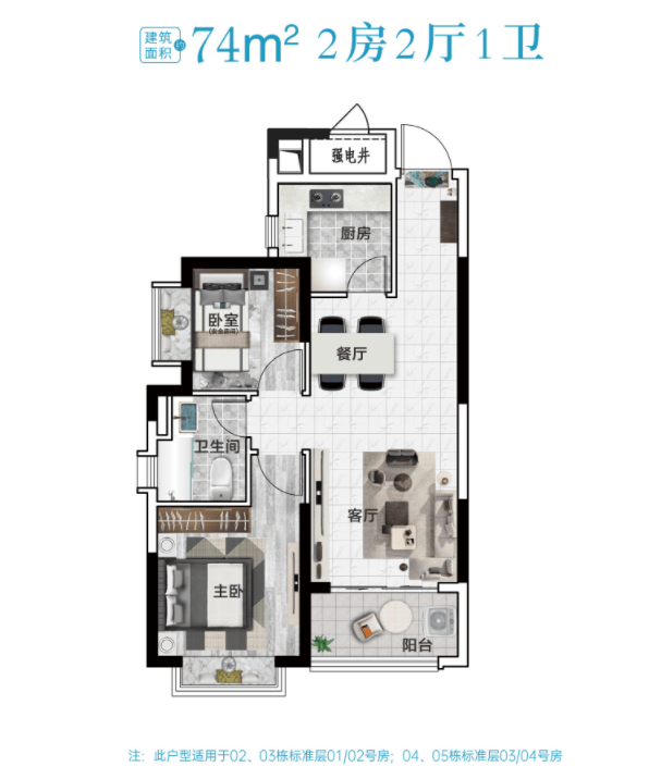 该户型做到户户朝南,视野均无遮挡,阳光清风不清自来。