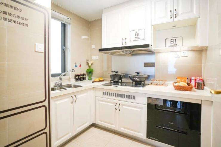 厨房还是罕见的明厨+U型设计,光线充足、动线合理,切菜、做饭、洗碗三不误。
