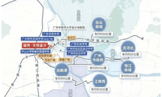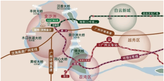 越秀天悦金沙坐落于广州市白云区金沙洲板块,紧邻荔湾区,处于广佛交界的核心位置,既能享受白云区的发展红利,又能便捷对接荔湾区的成熟配套,地理位置优越。板块作为广佛融合的重要枢纽,生活氛围浓厚,是众多购房者青睐的置业区域。