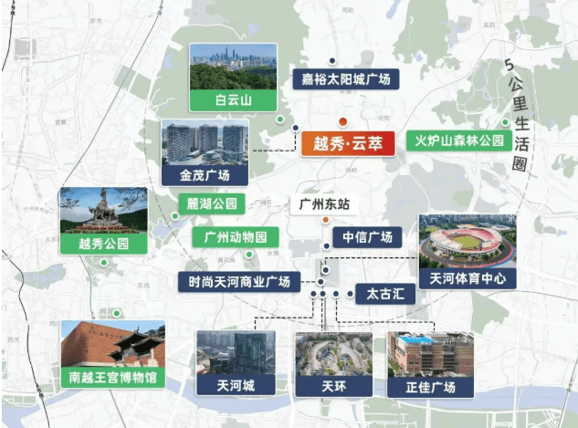 在广州楼市,“中轴”二字从来都是价值的代名词。从珠江新城的摩天楼宇到天河北的繁华商圈,城市中轴汇聚了一座城市最优质的资源、最便捷的交通、最成熟的配套,成为无数人追捧的人居高地。而越秀云萃,便坐落于这份稀缺的中轴芯脉之上,距离珠江新城仅5公里,地处白云与天河的交界处,一路之隔便是天河,真正实现了“近享天河繁华,坐拥白云静谧”的理想生活格局。