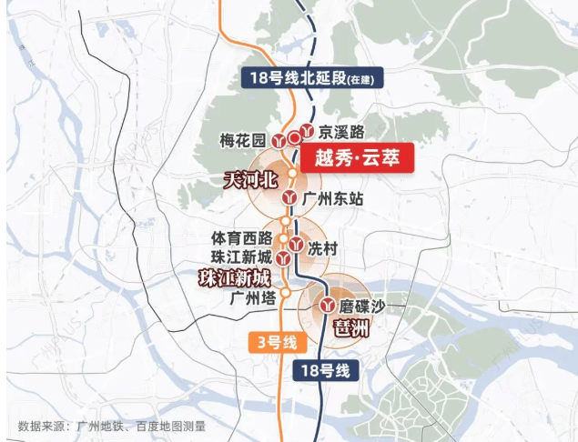 作为名副其实的“双地铁楼盘”,越秀云萃的交通优势堪称“教科书级”。项目家门口就是18号线京溪路站,作为广州地铁的“快速大动脉”,18号线串联起琶洲、珠江新城、天河北、万博等核心板块,未来业主下楼即可乘坐地铁,无需换乘,就能一线直达磨碟沙站(琶洲CBD)、冼村站(珠江新城CBD)、广州东站(天河北)、南村万博站(万博CBD),实现“半小时核心生活圈”,让通勤效率翻倍。
