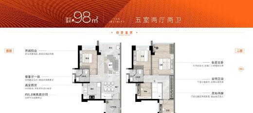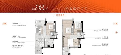 【臻藏稀缺复式产品】以98㎡为例,可住出127㎡的感觉,使用率高达130%,设计独特,不仅通风采光佳,而且私密性强,非常适合家庭成长需求。