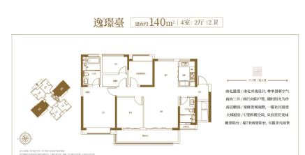 而逸璟臺140㎡户型则更显大气磅礴。横厅设计最大化采光面,客厅与餐厅一体化布局,增强家庭互动空间。四房配置可满足三代同堂或多孩家庭的居住需求,主卧套房带有衣帽间与双人洗漱台,尽显奢华质感。南向双阳台设计,既可晾晒衣物,也可种植花草,增添生活情趣。全屋收纳系统经过精心规划,玄关柜、衣柜、橱柜等均预留充足储物空间,满足多口之家的日常收纳需求。
