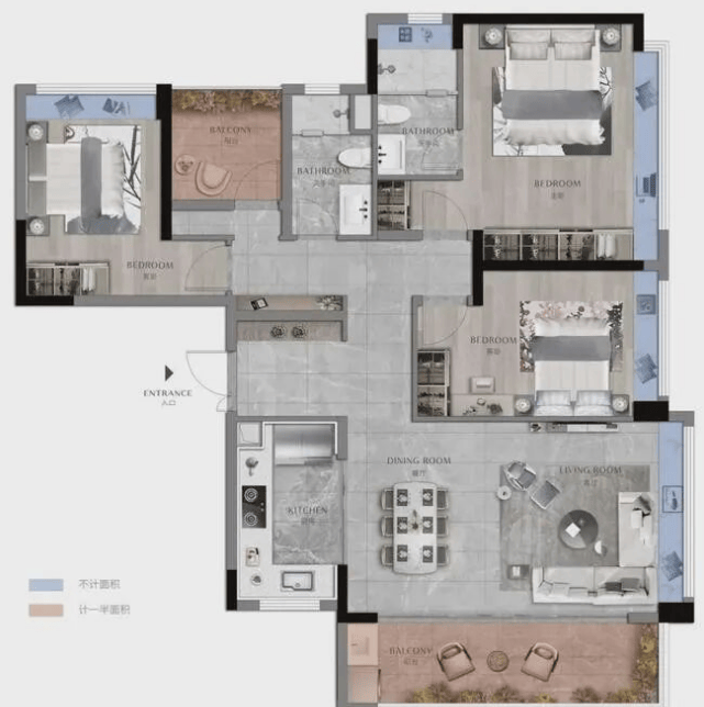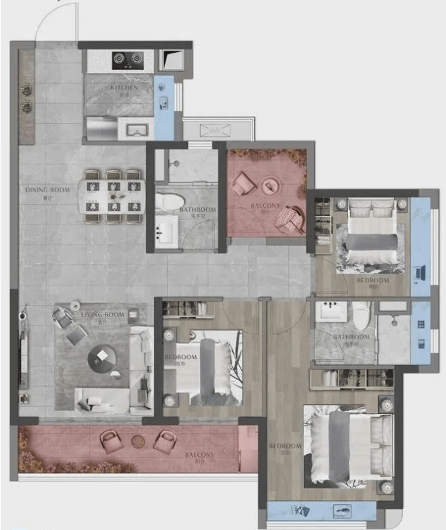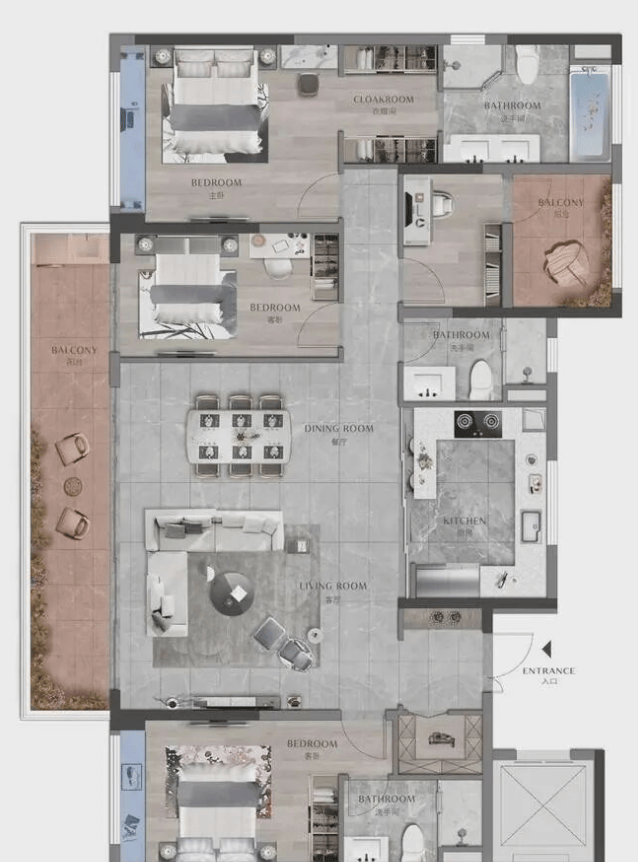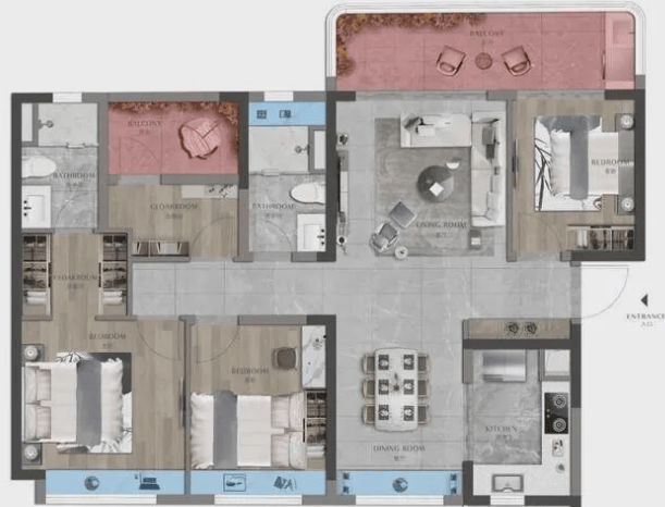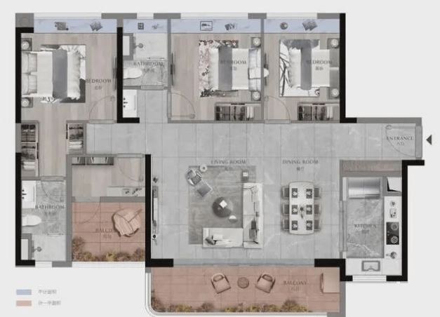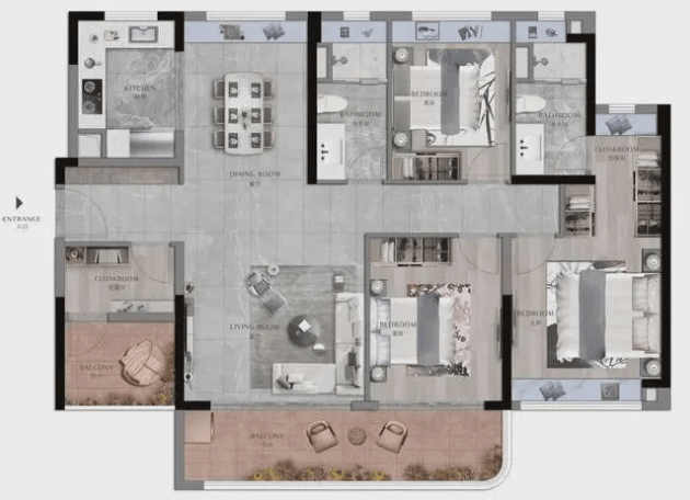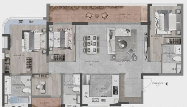 135–143㎡四房:功能分区清晰,主卧套房设计,兼顾私密与共享;