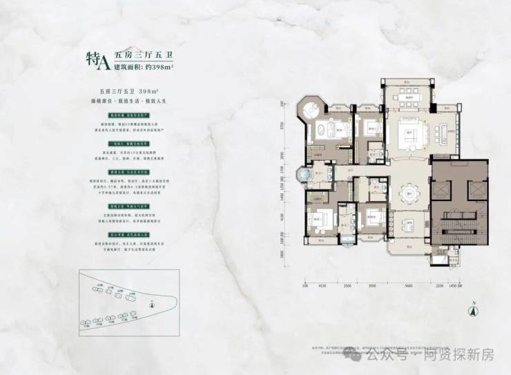 土地与格局:项目整体约 45 万㎡,作为收官之作的五號岛尖,是整个半岛价值最高的地块。建筑面积约 41 万㎡,仅规划 9 栋住宅,容积率极低,居住密度小,私密性极强。采用 “九星捧月” 环抱式布局,最大楼间距约 173 米,既保证了每一户的采光与通风,又营造出无遮挡的视野,推窗即见江景与园林,生活舒适度拉满。