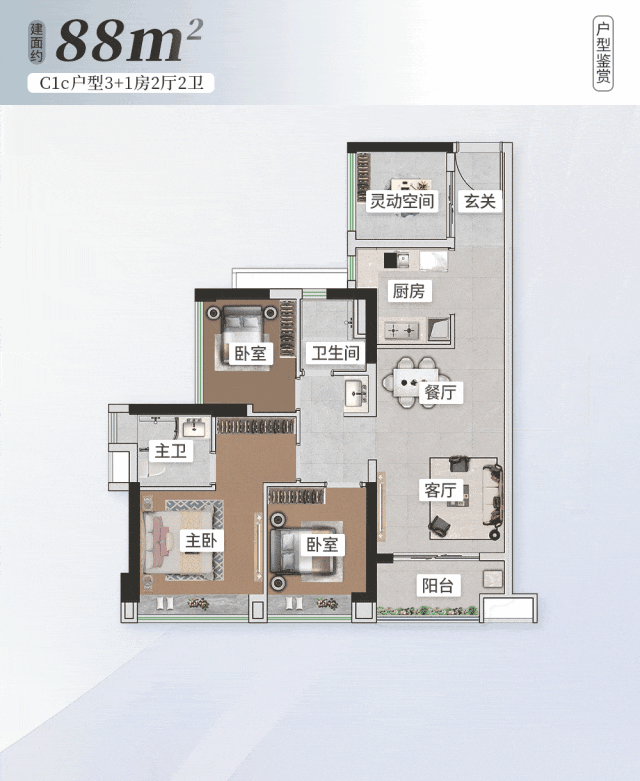 品实·云湖花城推出了建面约72平米至119平米的多种户型选择,包括72平米三房、88平米3+1房以及119平米五房。这些户型设计注重实用性和舒适性,户内实际可利用尺度更大。例如,119平米五房户型在同等面积下增加了卧室尺度,次卧也能放下1.5米双人床,加上床头柜和衣柜,非常适合大家庭居住。此外,客厅拉到了约6.7米宽,加上横厅格局,使空间显得非常宽敞,又能充分利用每一寸空间。