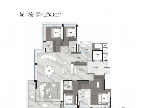 【湖境】建面约250㎡:约18.9米南向面宽,奢阔层高享受,约122方定制化多功能社交巨厅,15米转角阳台,一线观湖,视野极佳,可直观太阳湖全景与周边山体景观,空间奢阔大气,双主套设计,配套齐全,适合追求高品质湖居生活、注重社交体验的高端人群。