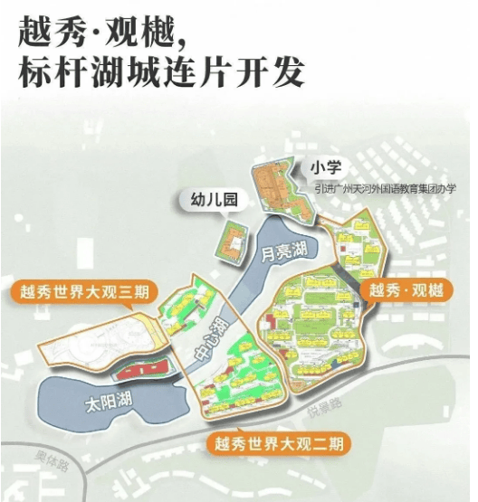 4. 广州加快推进世界大观板块连片开发,目前板块内越秀观樾一二三期地块开发有序推进,四期地块已由金茂与越秀联手打造纯墅社区,板块整体进入加速兑现期,已成功引进天河外国语教育集团、开放七大主题公园、启动商业招商、确定并运营三大会所,未来板块将成为广州高端湖居社区的标杆,价值潜力巨大。