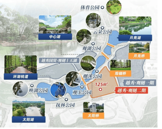 地理位置是买房的核心考量因素之一,越秀观樾凭借优越的地理位置,实现“生态宜居+产业赋能+便捷出行”三者兼顾,既能享受静谧的湖居生活,又能快速通达城市各核心区域,具体地理位置与交通状况如下: