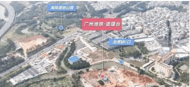 项目位于广州城市中轴南延段,紧邻地铁18号线与11号线(在建)龙潭站,直线距离仅约132米,是区域内罕见的“零距离”接驳双地铁豪宅。相比广州外围板块,珑璟台拥有不可复制的“TOD+湿地”稀缺资产,是真正的“离尘不离城”。