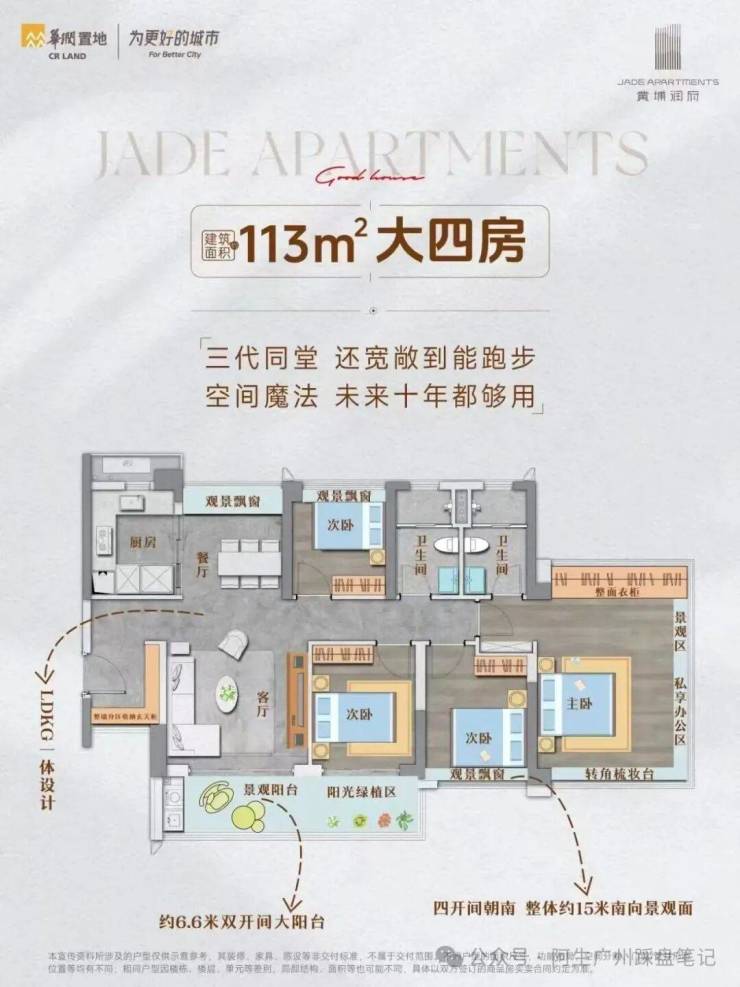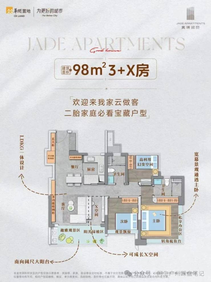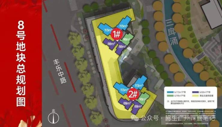 在售产品: 建面约88㎡三房两厅一卫、98㎡三房两厅两卫、113㎡四房两厅两卫。