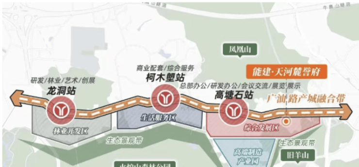 根据《广州市国土空间总体规划(2021-2035)》,能建麓誉府所在的天河智慧城板块,将与珠江新城、金融城形成“双核驱动”,成为广州未来十年最具潜力的核心发展区。项目周边3公里内覆盖3大TOD发展中心(高塘石、柯木塱、龙洞),未来5年将新增3所名校、2座城市公园,区域价值持续攀升。
