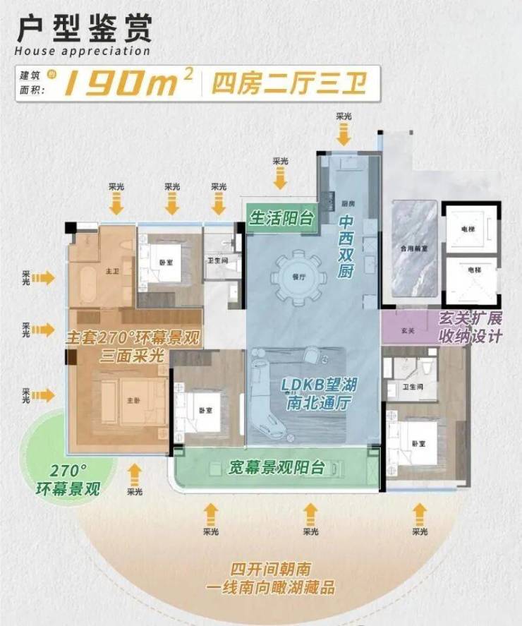 越秀观樾由全球顶级设计团队倾力打造,呈现自然美学。GAD公司负责总体规划,冼剑雄XAA执笔建筑立面设计,SWA执笔湖区景观设计。一期规划图和在售户型包括建面约140/164/190/240平方米的临湖大平层住宅,满足不同家庭的需求。