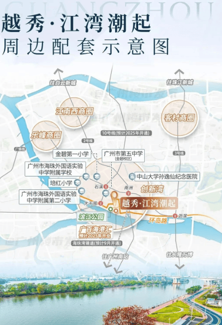 直线距离约650米处设有地铁10号线大干围站,便捷连接天河、越秀、海珠、荔湾四大核心区域。此外,海珠湾隧道(在建)预计今年开通后,到广州南站的通勤时间将缩短至约15分钟。
