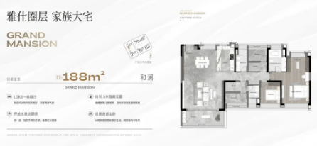 江湾·和樾推出的户型设计精巧,注重空间利用与居住舒适度,涵盖138㎡至188㎡的滨江四房户型。通过创新的设计理念,使户型使用率高达约95%,为住户提供了宽敞明亮的生活空间。