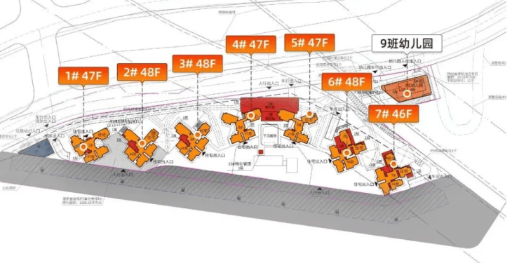 总层数:46-48层。1/4/5栋47层,2/3/6栋48层,7栋46层