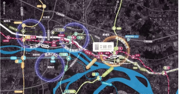 项目是名副其实的双地铁上盖物业,距离地铁 5 号线与 7 号线换乘站大沙东站仅约 300-400 米,步行 3-5 分钟即可抵达地铁站,通勤出行极为便捷。地铁 5 号线作为广州东西向核心干线,串联起珠江新城、金融城、黄埔临港经济区三大核心板块,从大沙东站出发,3 站可达金融城东区,6 站抵达金融城起步区,10 站直达珠江新城,快速衔接城市核心商务圈,满足在珠金琶上班人群的日常通勤需求。7 号线则向北连通科学城,向南衔接大学城、万博等板块,实现黄埔与广州各大产业板块的快速互通。在建的 13 号线二期建成后,将进一步完善区域轨道交通网络,强化老黄埔与天河、越秀等中心城区的联系,形成多地铁交汇的交通枢纽格局。