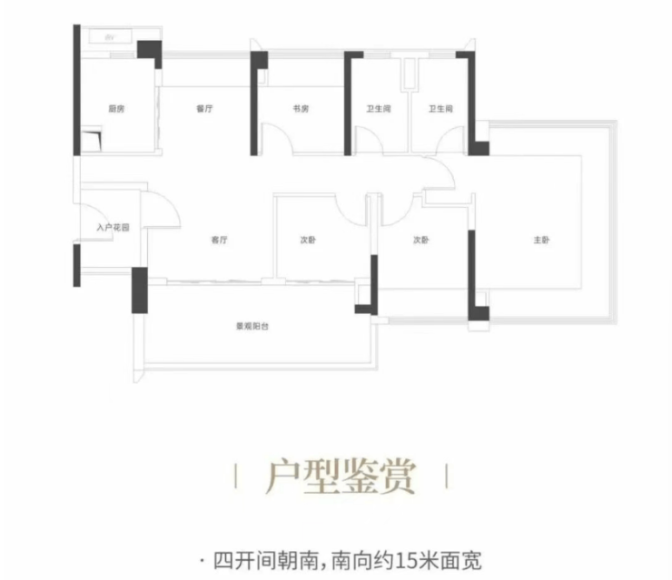 建面约 113㎡四房两厅两卫,为终极改善户型,五开间朝南,南北对流,通风采光达到顶级水准。搭配超大景观阳台,270° 俯瞰社区园林与河涌景观,视野无遮挡。主卧空间宽敞,配备独立衣帽间与全景飘窗,彰显改善居住品质。户型使用率优异,实得空间宽敞,可满足多代同堂居住需求,一步到位实现改善置业,无需后期置换。