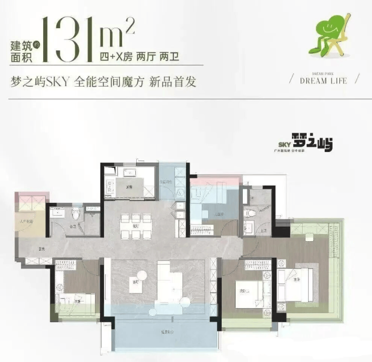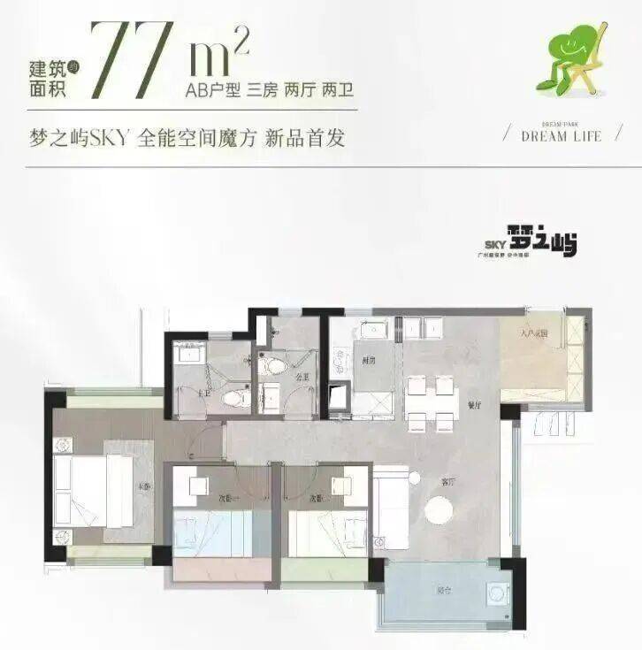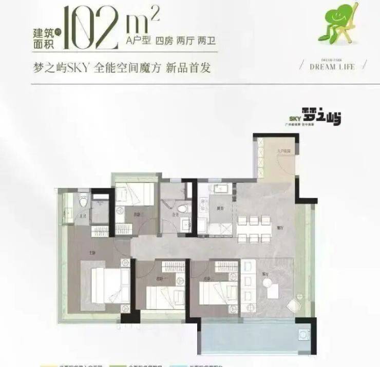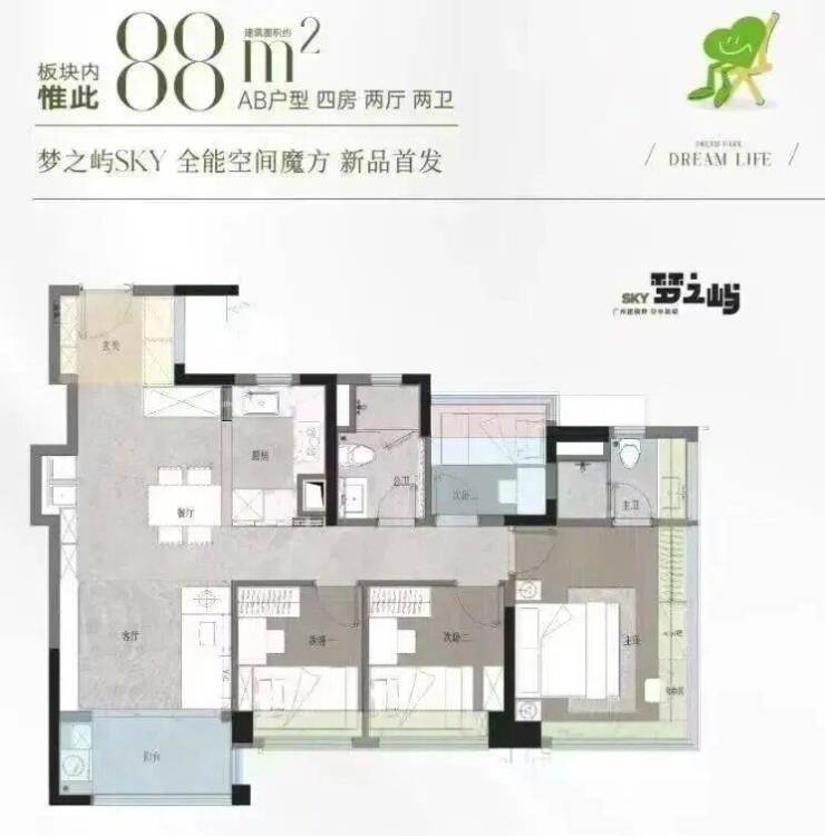 作为项目的改善担当,该户型采用真正意义上的“两梯两户”纯板楼设计,私密性强,无连廊干扰。全屋南北通透,三至四房布局灵活,主卧带独立卫浴与观景飘窗,部分单元可直瞰映辰湖一线湖景。LDK一体化客餐厨动线流畅,阳台面宽超6米,将湖光绿意尽收眼底。