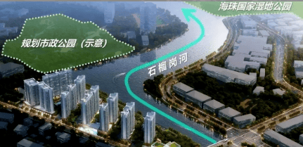 从自然资源禀赋维度,项目西侧紧邻海珠湿地公园,南向直面石榴岗河滨水景观,湿地与河湾双重生态资源环绕,是城芯难得的内外双生态格局,自然资源稀缺性无可替代。城市人文底蕴层面,扎根海珠老城底蕴之上,兼具老城生活烟火与新城科创活力,岭南水乡生态肌理与现代都市发展在此相融,契合广州本土人居的精神归属。