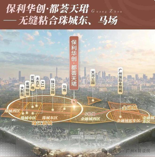 项目坐落在天河区员村一横路,紧邻马场,正好卡在华南快速与黄埔大道交汇的位置。西边一步之遥就是珠江新城东区核心,东侧直通金融城,南面隔江遥望琶洲西区,开车出门基本是“10分钟生活圈”,无论去珠江新城CBD、金融城办公区还是琶洲展馆,都特别顺畅。未来地铁13号线二期白马岗站就在楼下,步行几分钟就能到,预计2025年底通车,加上已有的5号线、21号线和13号线一期,轨道交通便利度会进一步拉满。
