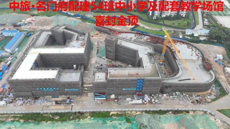 社区内自带18班幼儿园,54班九年一贯制公立中小学,小学建筑于2022年底封顶,中学主体将于近期封顶。