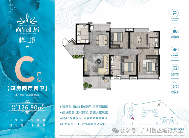 多元化优质户型:项目在售建面约 101-127㎡三至四房户型,覆盖刚需、刚改、改善等不同家庭的居住需求,户型方正实用,南北通透,空间利用率高,可满足不同家庭的多元化居住需求。