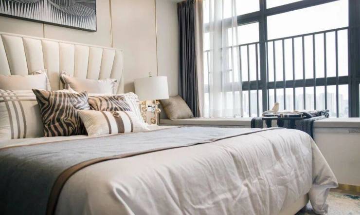 主卧采用套房设计,带有独立的卫生间和衣帽间,保障了主人的居住私密性,同时主卧朝南向,带有飘窗,拓展了使用空间,也提升了居住的舒适度。