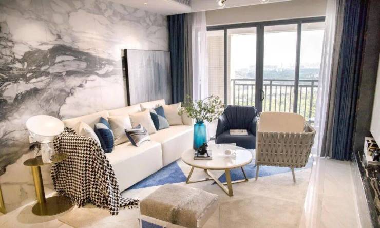 客厅连接南向超大观景阳台,阳台面宽充足,和客厅、次卧连通,既拓展了室内的空间感,也打造了超大的观景休闲空间,日常在这里喝茶、观景、健身,都非常合适。