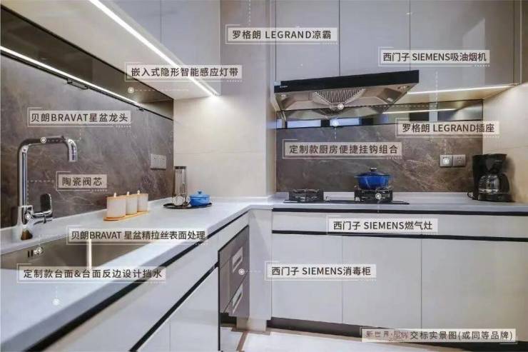 Q1:新世界星辉倚璟湾的精妆交付标准中,厨房和卫生间包含哪些基础配置?