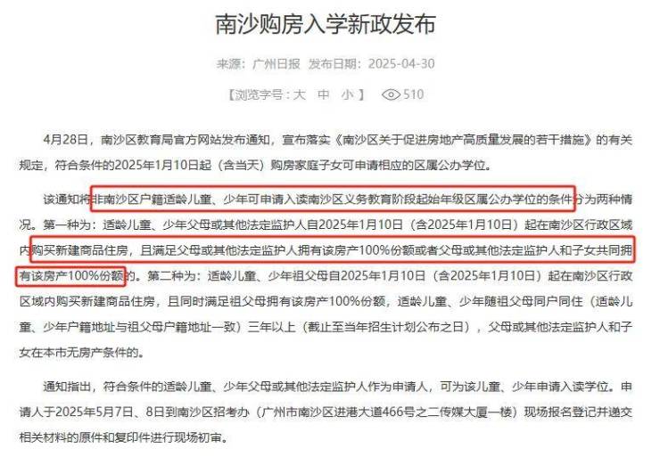 A:依据穗南教〔2025〕12号文件,项目配建华南师范大学附属南沙小学东悦湾校区,采用“人户一致”原则优先录取本小区业主子女。