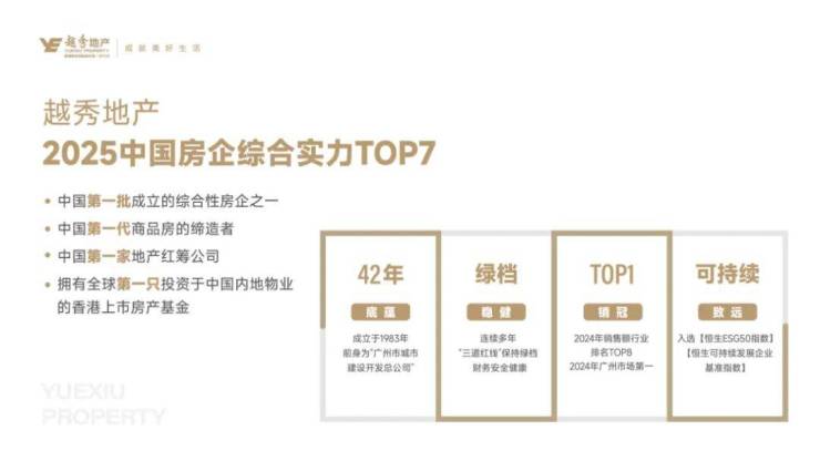 所获荣誉:越秀地产连续10年入选“中国房地产百强企业”,2025年位列第12位(中指院)