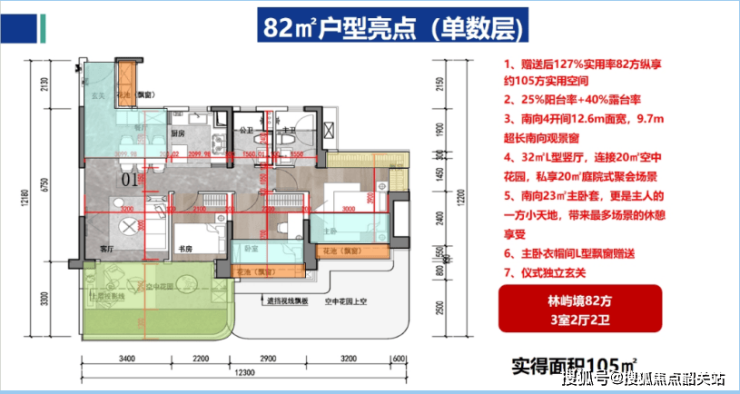 作为广州首个超新规四代住宅,招商林屿境采用25%阳台率+40%空中花园设计,实测得房率达140%。以82㎡三房为例,实得面积超110㎡,赠送6米露台,总价213万起;125㎡四房配备独立衣帽间+双露台,南北对流,采光极佳。