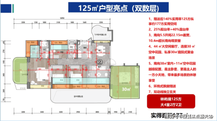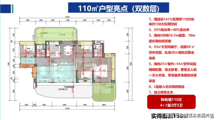 A:采用分离式公摊设计,套内实得面积比同面积段多10-15㎡,阳台率25%+空中花园40%不计入产权面积,实测得房率达140%。