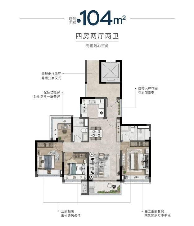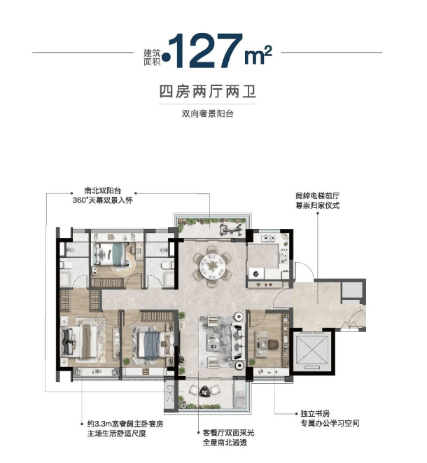 6. 户型信息:全四房设计,低梯户比打造类豪宅体验
